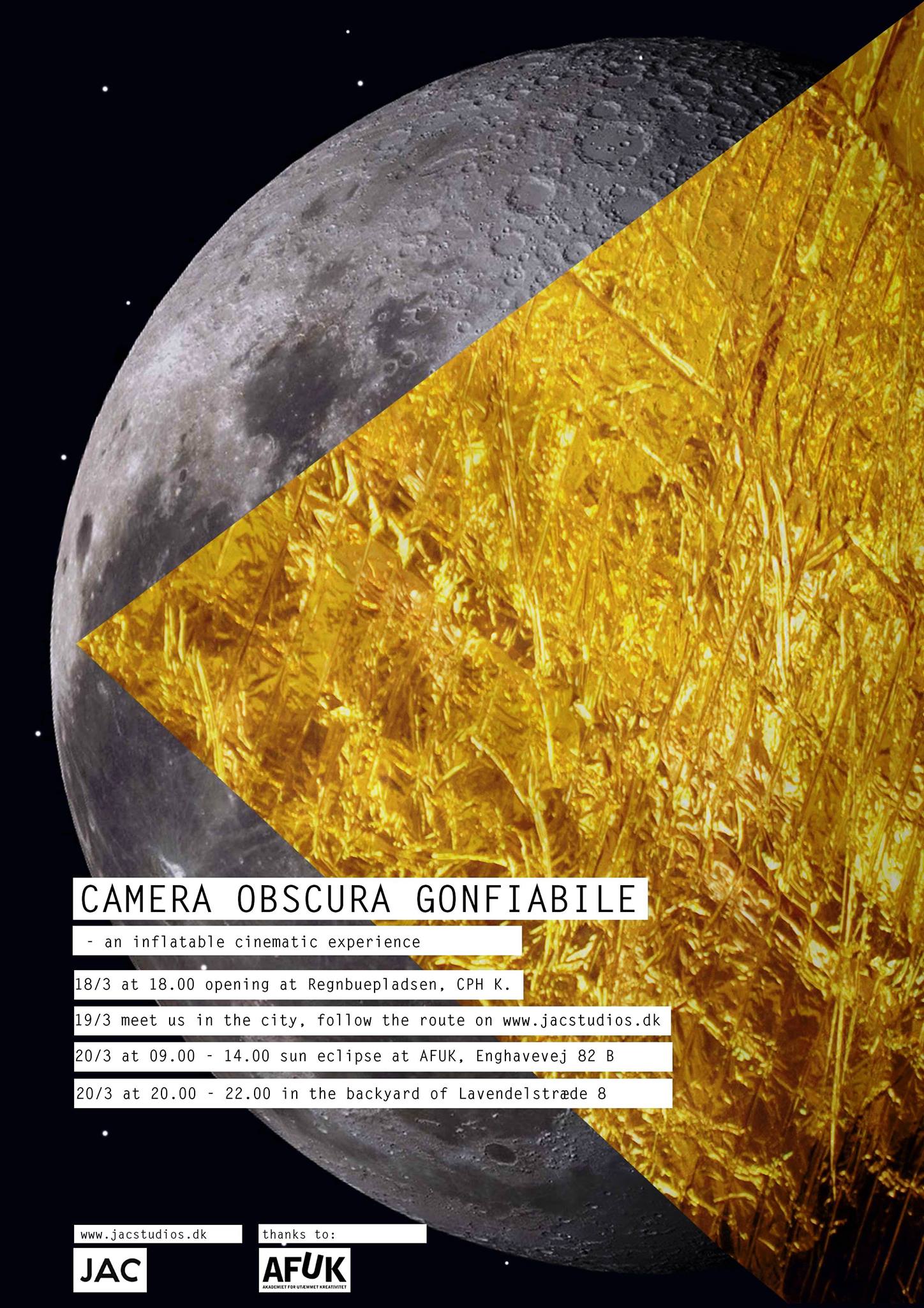 After the principle of the camera obscura the real-time scenery of the City of Copenhagen, the Filmfestival and its surrounding festivities, are projected through a pinhole into the inner space of the pavilion. For the public to enjoy, it is the upside down analog`movie`contrasted by an outside digital projection at the entrance, that is dealing with the themes of time and our own perception of the present. The individual impression of the visitor is leading to a shared, fun and architecturally activated experience.